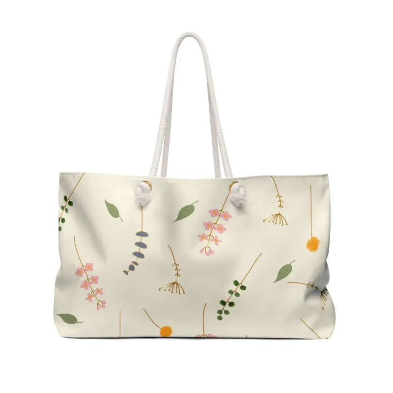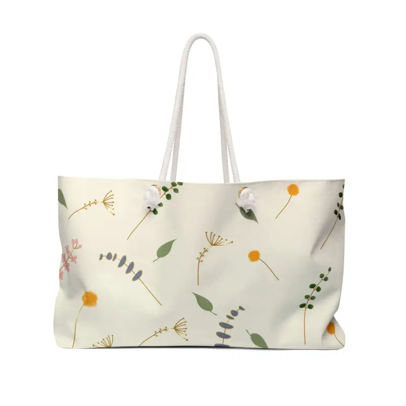 Feel the rush of weekend freedom as you sling on this polyester weekender bag designed for every spontaneous escape and city adventure. The dreamy flowers pattern in creamy whites and lush greens invites memories of sun-kissed picnics and rooftop toasts, giving you a mini-vacation wherever you go.