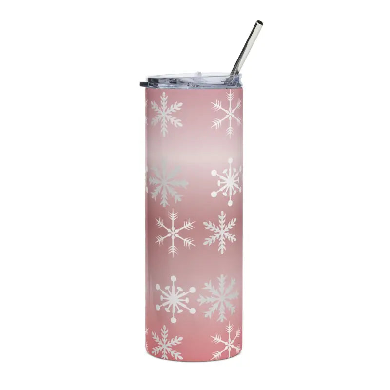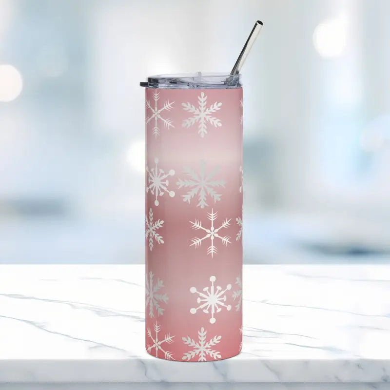 Skinny Steel Tumbler Snowflakes Pattern Pink 20oz - DipaliZ