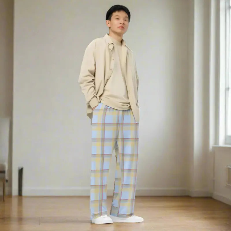 Print: Blue checkered print for modern, eye-catching style.