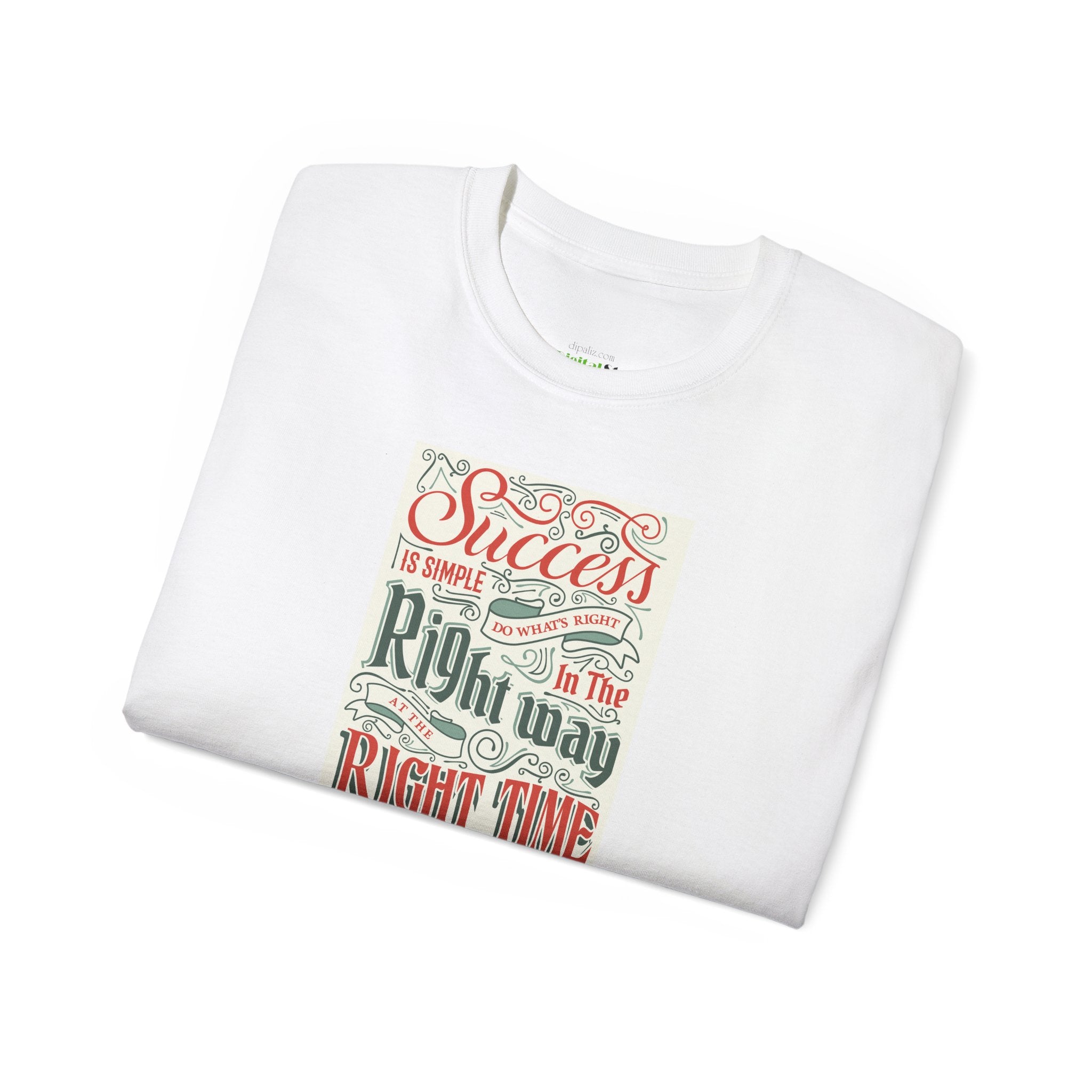 Success is simple, Unisex Ultra Cotton Tee. This unisex ultra cotton tee is a classic. Quality cotton construction means that designs are sure to shine. The shoulders are tapped for a good upper-body fit. There are no side seams, ensuring a clean, unbroken flow. The collar has ribbed knitting for improved elasticity. The materials that went into this product are sustainably sourced and economically friendly.