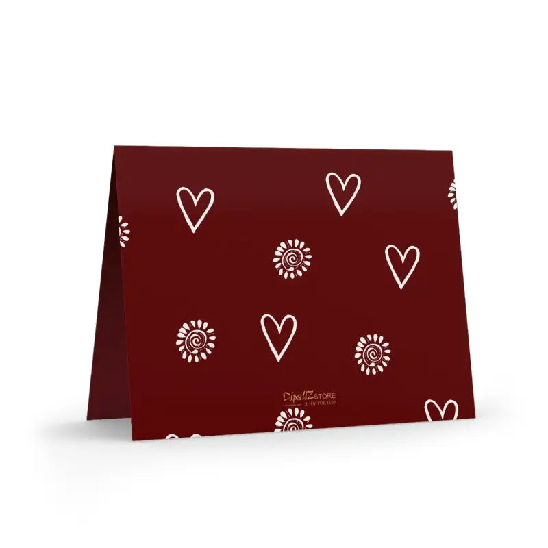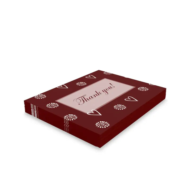 Thank you with hearts, Greeting cards with message (8, 16, and 24 pcs). Add a unique touch to any wish with these greeting cards. Measuring at 4.25” x 5.5”, these printable cards can handle long-distance transportation with minimal risk thanks to their robust, uncoated cardstock. Available in 8-packs, 16-packs, and 24-packs - each pack comes with size-matching white envelopes for each card.
