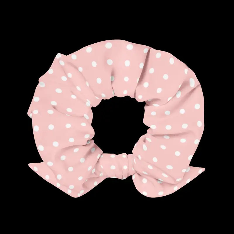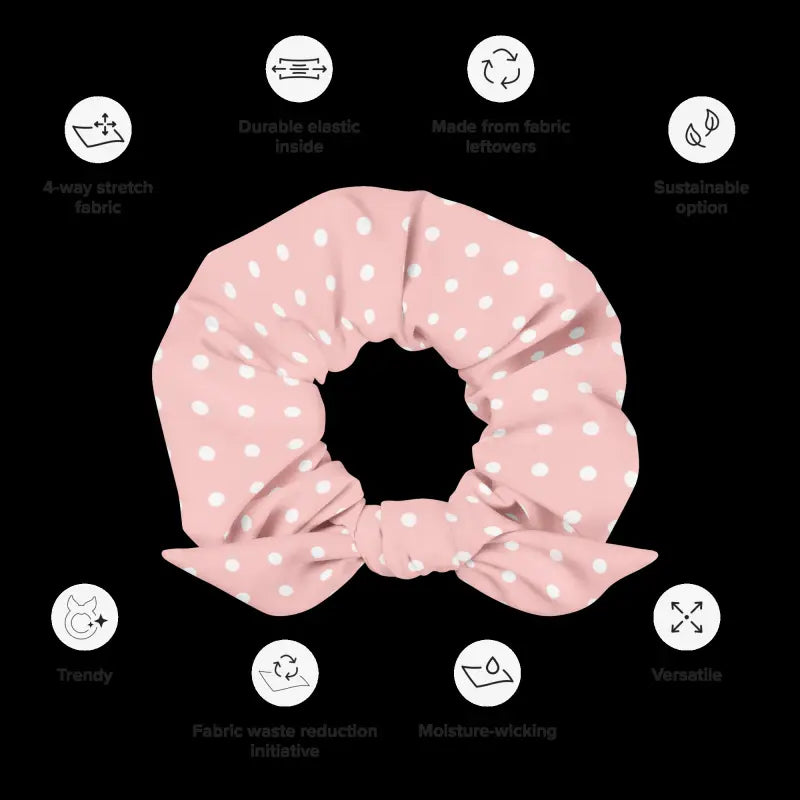 Ready to turn heads and upgrade your hair routine? Add instant style, comfort, and eco-cred to every ponytail with this standout scrunchie featuring trendy white polka dots.