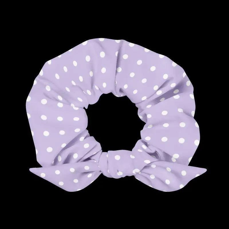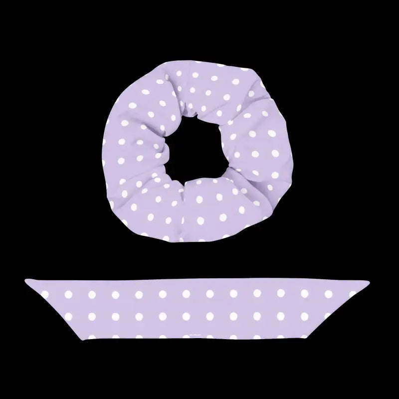 - On-trend purple scrunchie with classic white polka dots for head-turning style