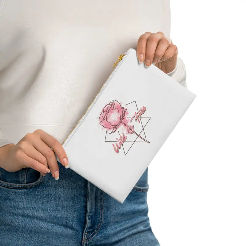 Wild and free, Cosmetic Bag. Made with 100% cotton canvas, this cosmetic bag brings out the chic in your style. Coming in at 9.5” by 7” size, it features a gold color zipper along with a lined interior for both added fashion points as well as durability. Add your own design and travel with all your supplies or valuables stylishly organized.