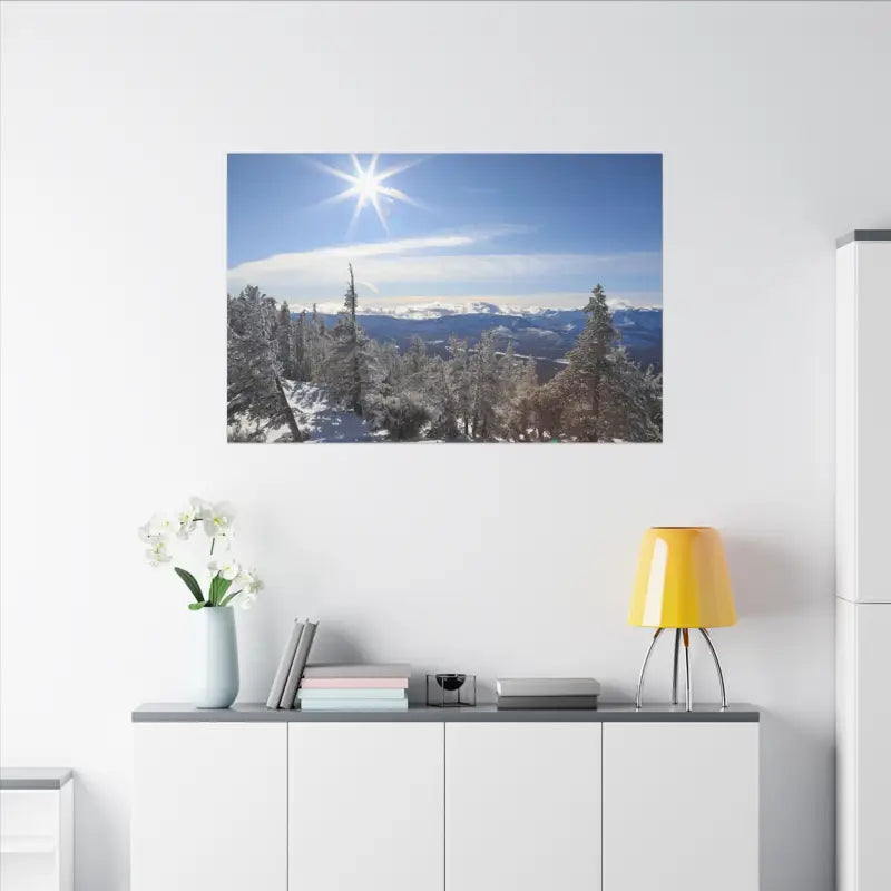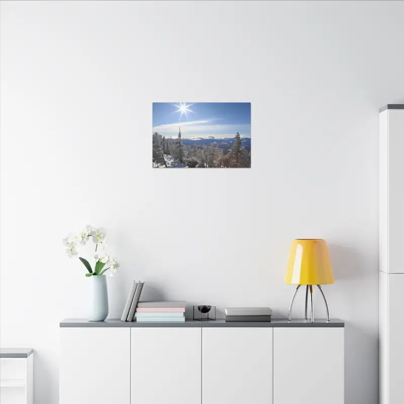 Winter wonderland, Matte Canvas, Stretched, 0.75". Each matte canvas comes with a back hanging already included for convenient placement. The frame is made with profile radial pine that is ethically sourced from renewable forests.