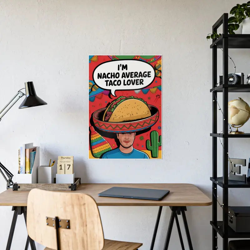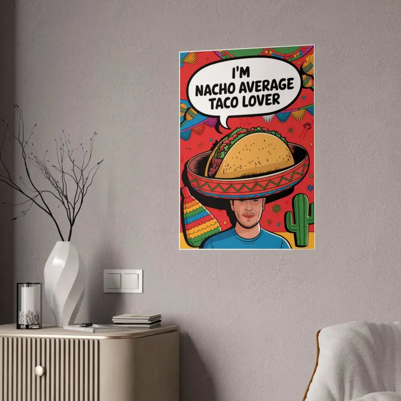 Hey, taco enthusiasts! Ready to spice up your space with a dash of personality? You’ve just stumbled onto the Nacho Average Taco Lover High-gloss Poster, a brilliant way to scream out loud your love for those crispy, cheesy delights that everyone can't get enough of. This isn’t just any poster; it’s a glossy homage to all things taco, promising a vibrant touch to any room corner you choose.