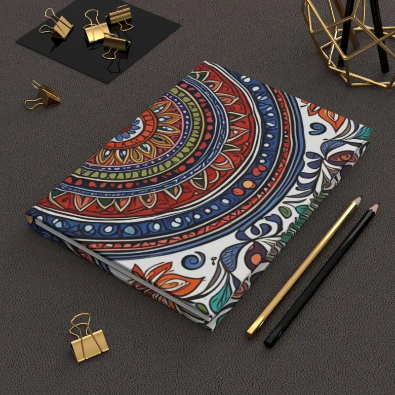 Print: Features an intricate Indian Bandhani pattern print that exudes timeless cultural elegance on both the front and back covers, making this matte hardcover journal a standout in women’s fashion.