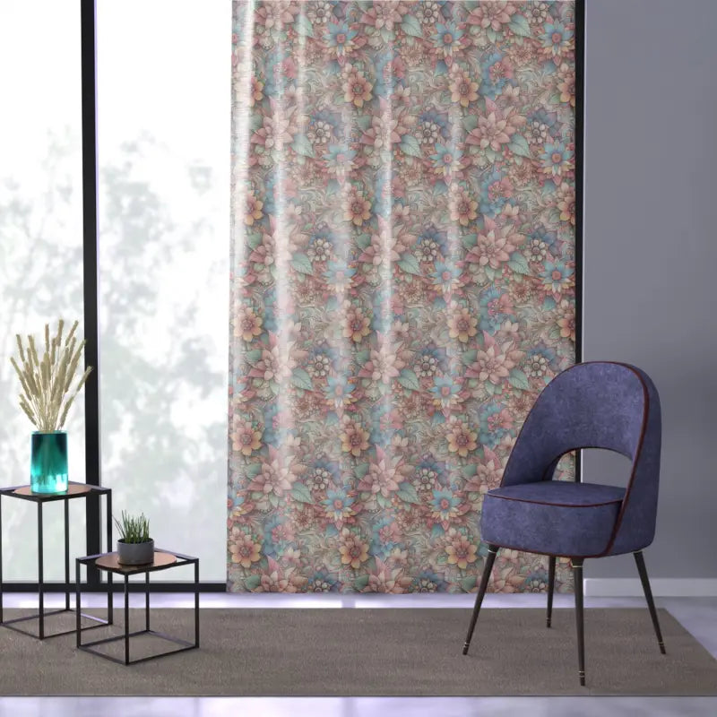 Print: Intricately designed pastel flowers create a unique artwork effect that elevates your decor while softly filtering the sunlight.