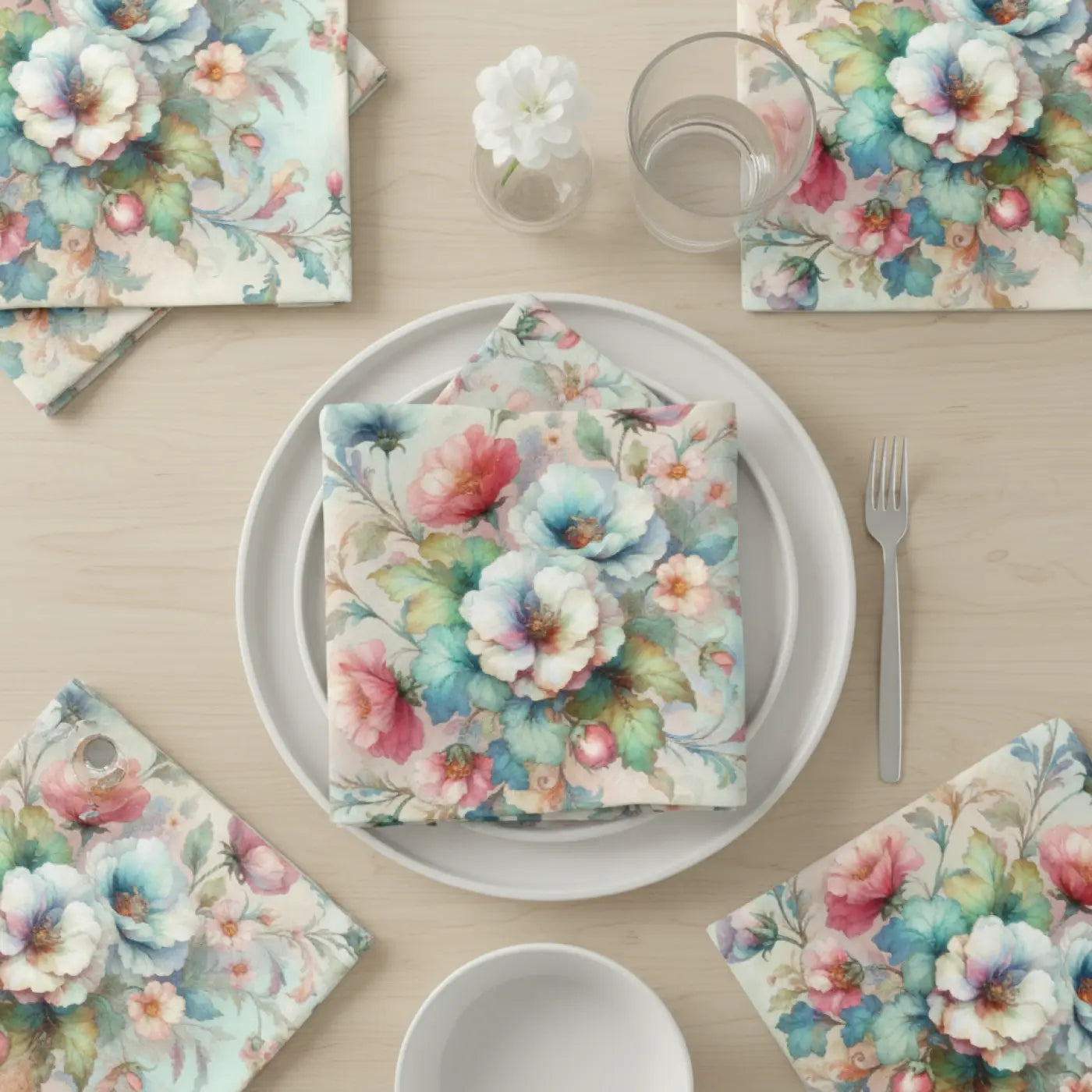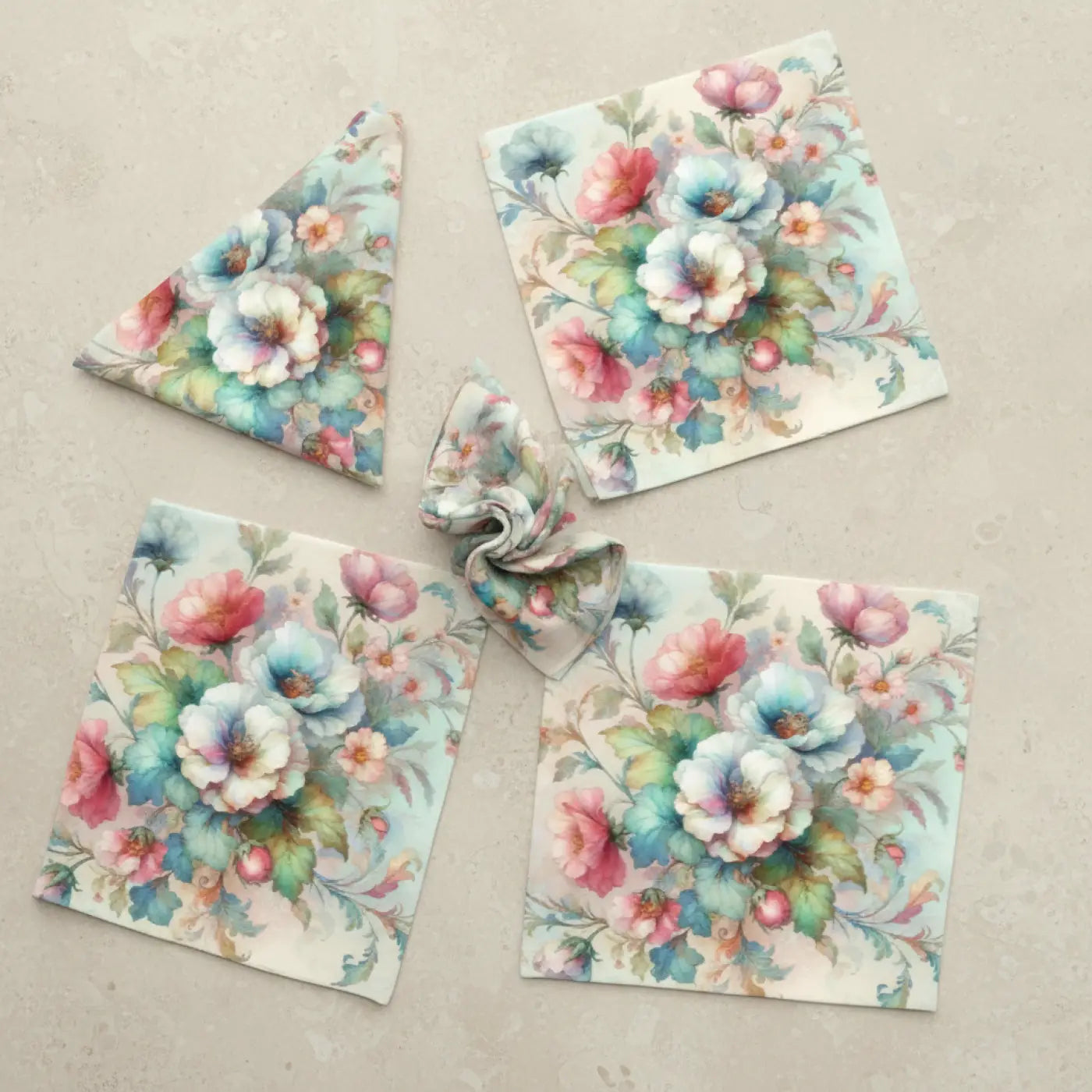 Intricately designed watercolor flowers Napkins  | Set of 4