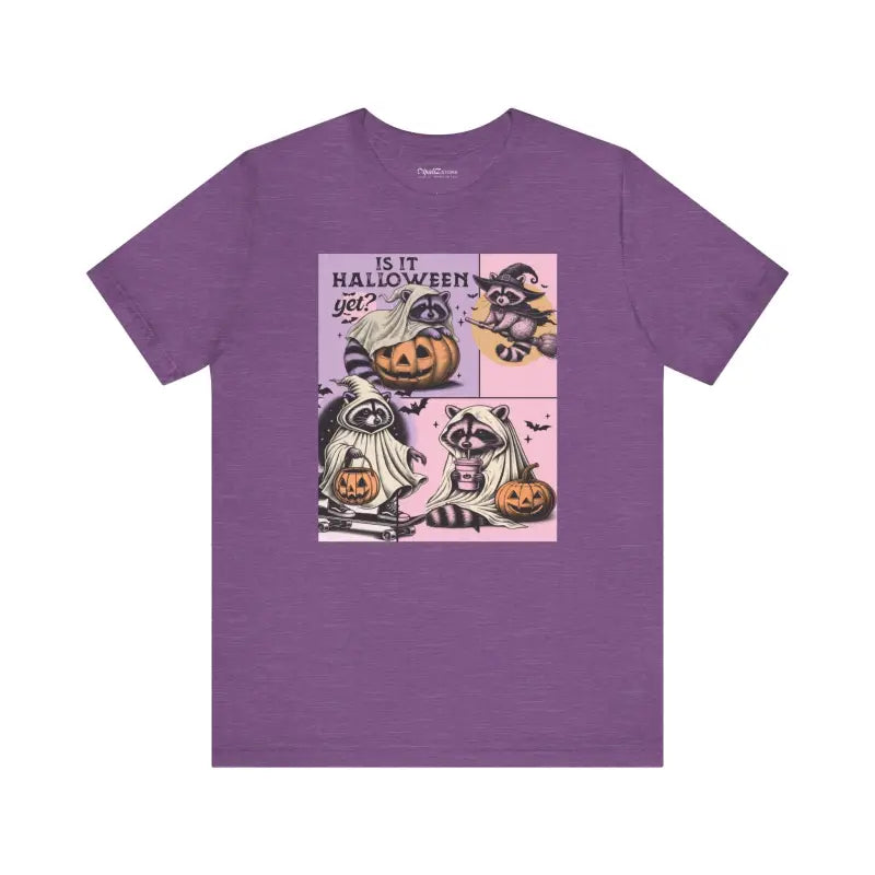 Ready to make this spooky essential yours? Join the Halloween fun in effortless style with a tee that's got both your comfort and the planet in mind. Embrace the season with the Spooky Season Vibes: Is it Halloween Yet Raccoon Short Sleeve Tee, and let your love for all things spooky shine. Get yours now and be ready to ask the burning question on everyone's mind: Is it Halloween yet?