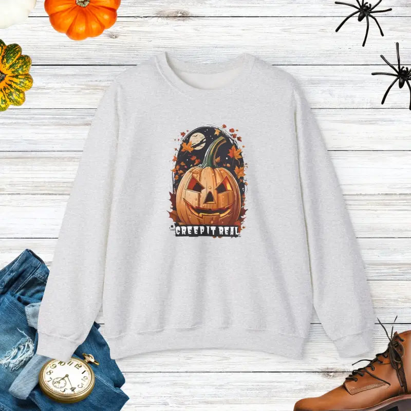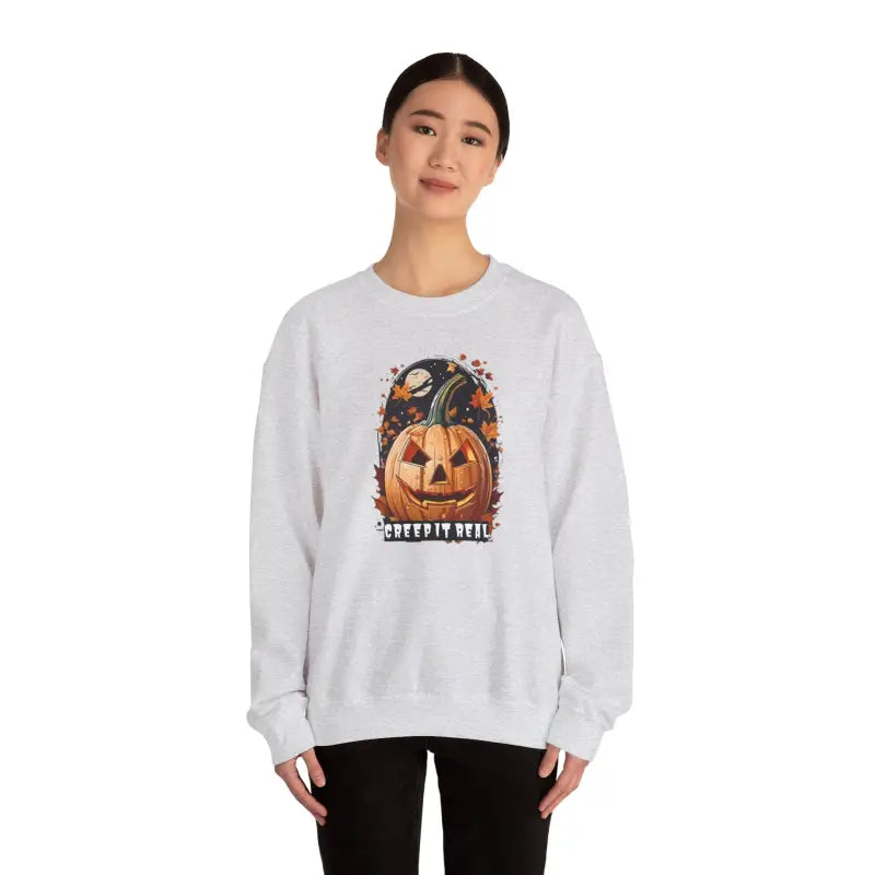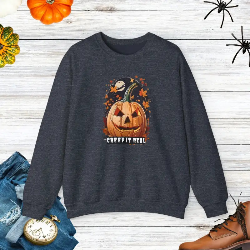 Slip into the Spooky Jack o Lantern Heavy Blend Crewneck whenever you want to channel your inner ghostly guru. Rock it at Halloween bashes, flash it for pumpkin patch selfies, or simply cozy up on the sofa for a scary movie night. It's not just a sweatshirt; it's your all-access pass to staying snug and stylish through a haunted season.
