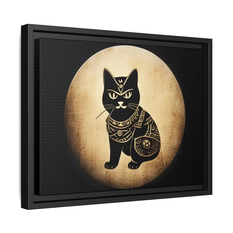 Japanese Samurai Cat Canvas Art Matte Black Frame - DipaliZ