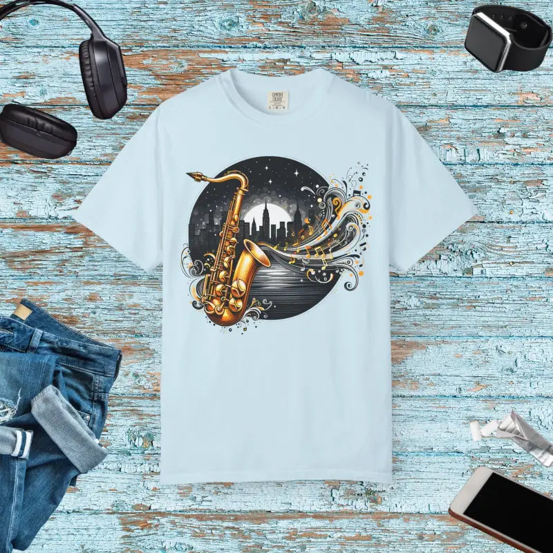 Don’t wait to elevate your everyday style—grab this unisex garment-dyed t-shirt featuring a sensational musical art design and make every day a jazz-filled celebration!