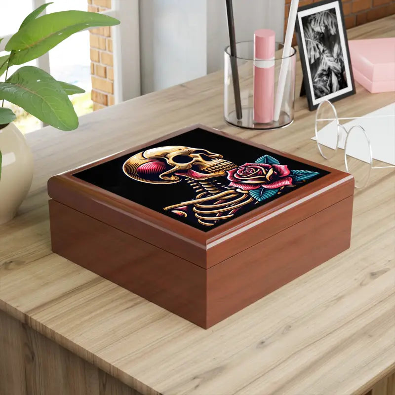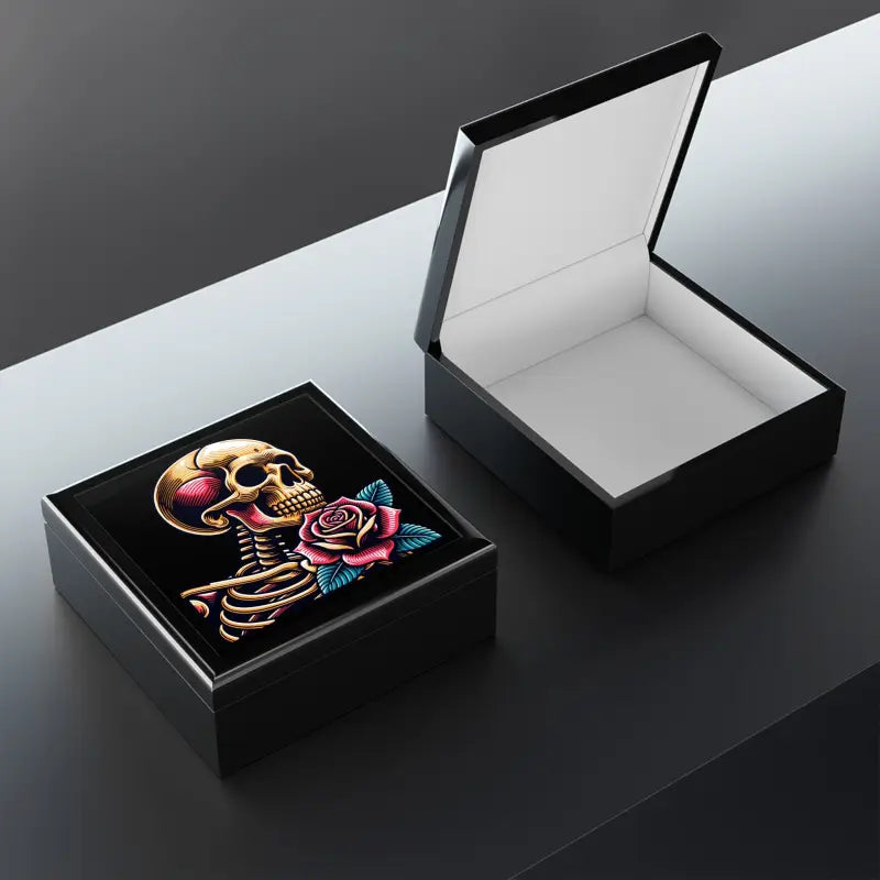 Skull Rose Jewelry Box Glossy Varnish Finish - DipaliZ