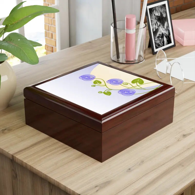 - Elevates any room with a sophisticated design featuring purple flowers and a luxurious jewelry box finish.