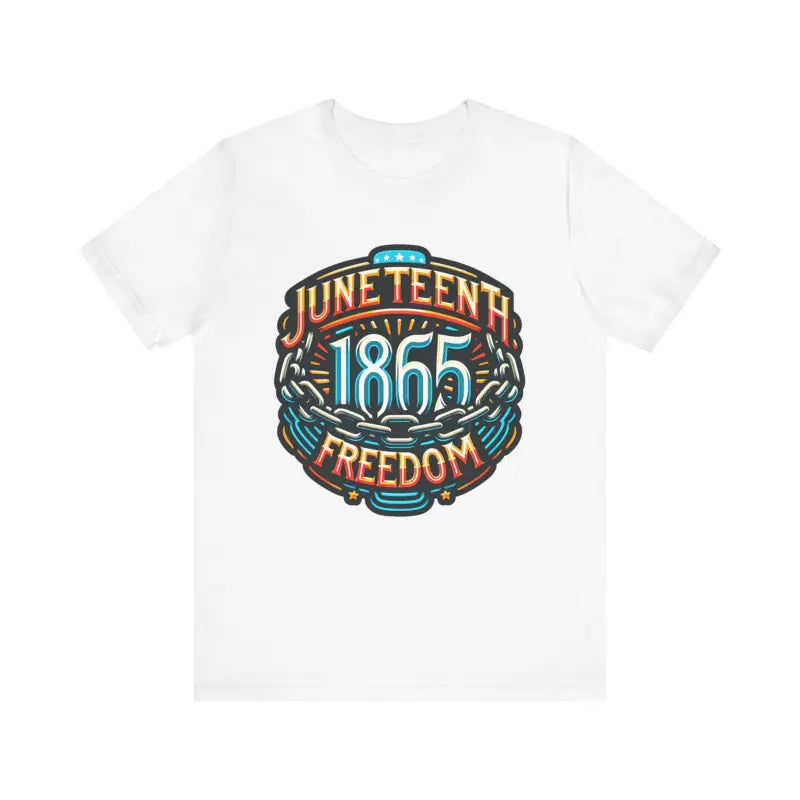 Step into history and celebrate Juneteenth in style with our Unisex Jersey Short Sleeve Tee that lets you wear your pride and spirit with every step. This essential t-shirt delivers outstanding comfort with its soft, breathable cotton that embraces your skin like a gentle breeze. The timeless design ensures this versatile tee fits like your favorite go-to apparel. Built for both style mavens and casual dressers, this t-shirt isn't just about looking good—it's a statement piece proclaiming freedom and unity since 1865.