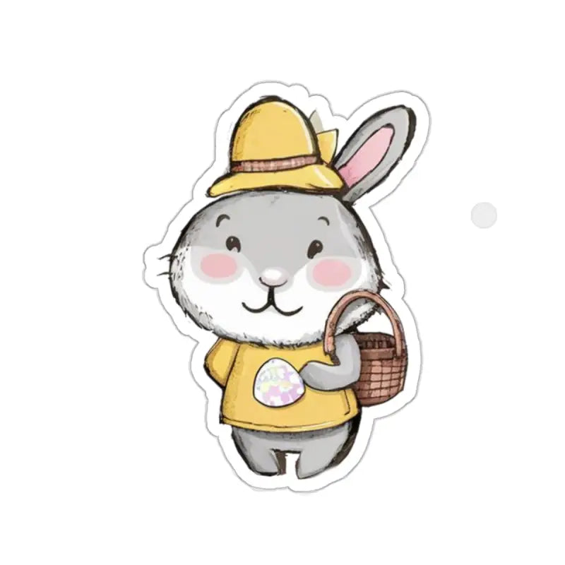 Happy Bunny Kiss Cut Stickers - Whimsical Basket Design - DipaliZ