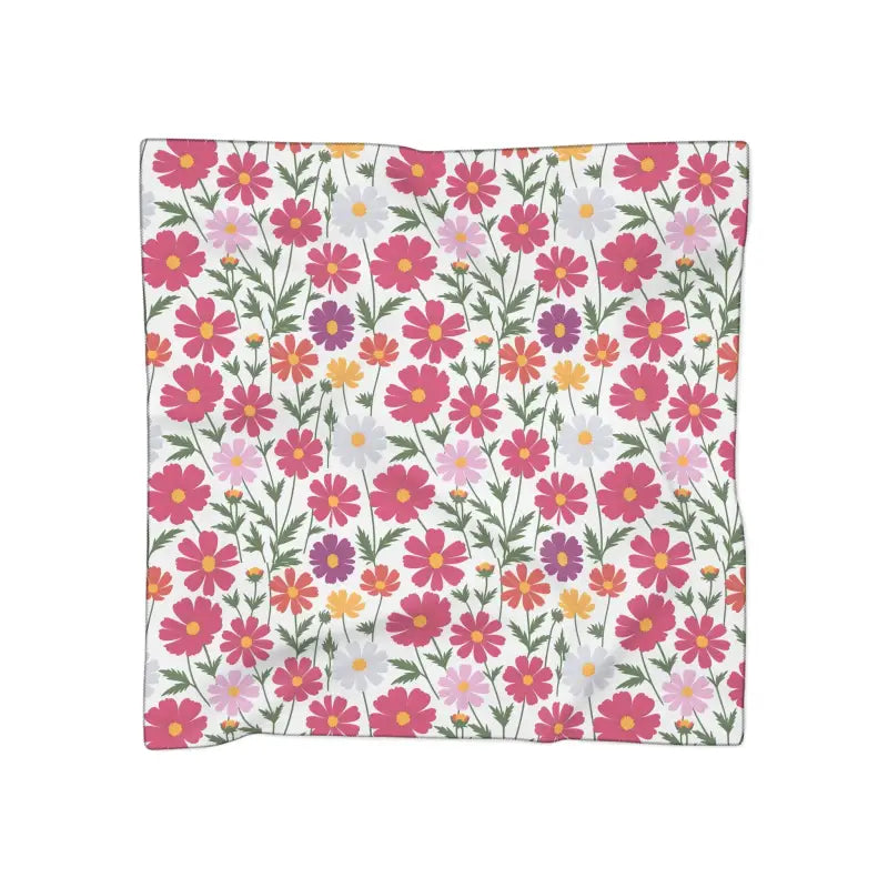 Large Floral Pattern White Poly Scarf - Bold Garden Style - DipaliZ