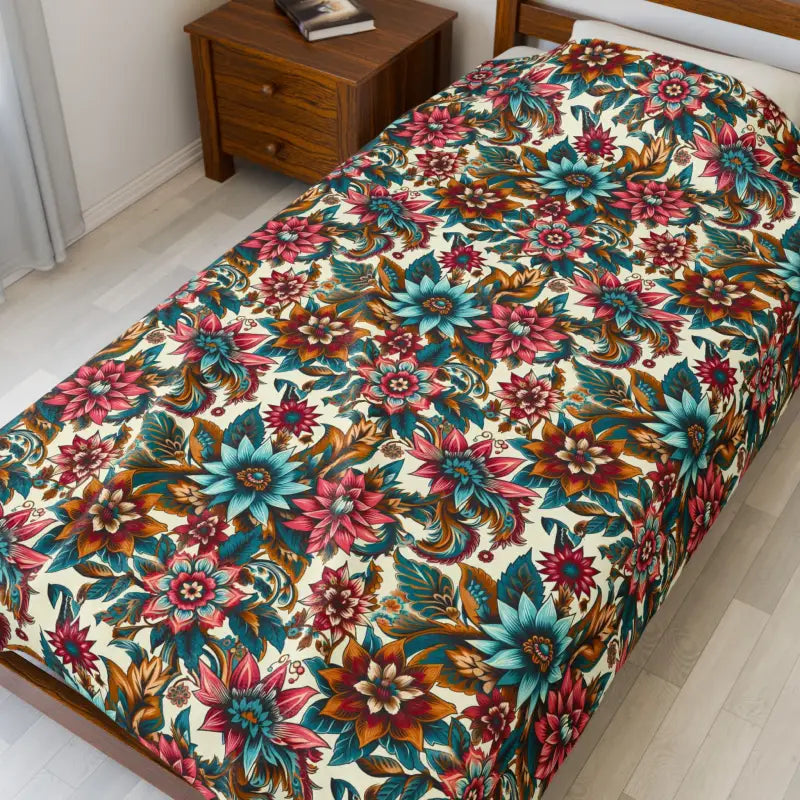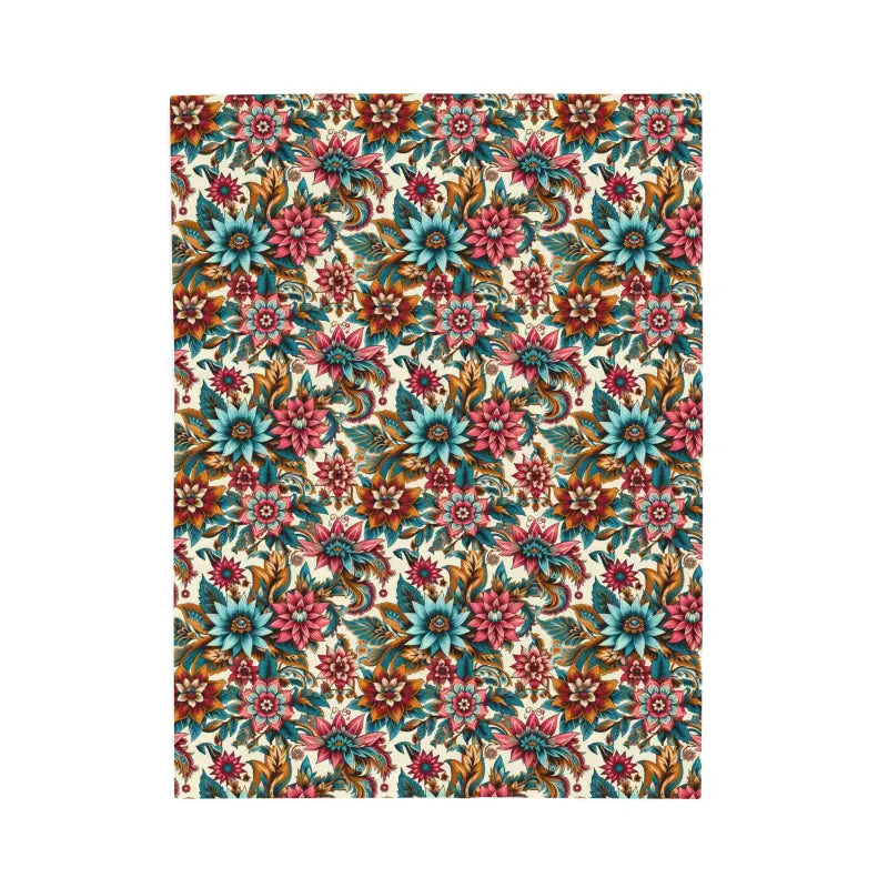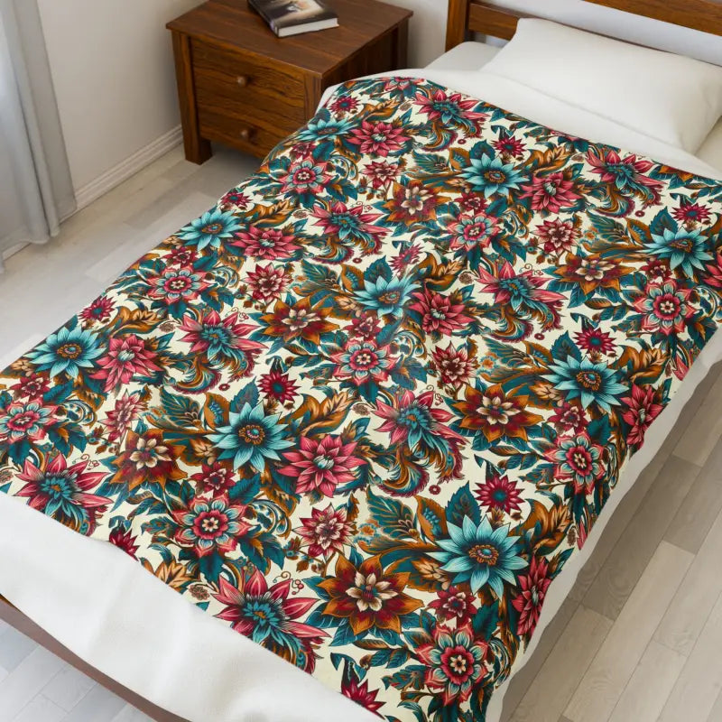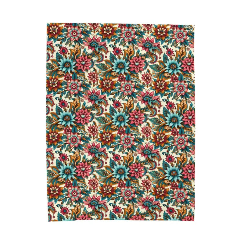 Large vibrant flower pattern Velveteen Plush Blanket. Create a cozy and warm atmosphere at home with this plush velveteen blanket. It is soft to touch and perfect for any home. Available in three sizes: 30x40", 50x60", 60x80".