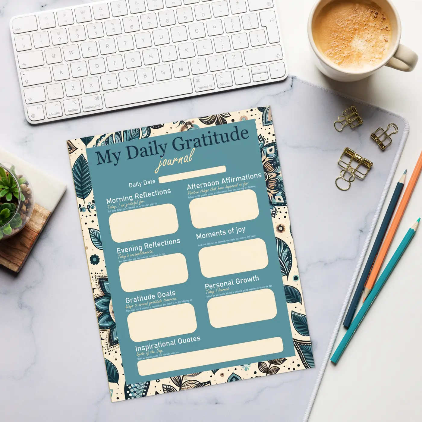 Print: A fusion of natural leaves and geometric designs, crafted to ignite creativity and elevate your daily gratitude journal moments with style.!!