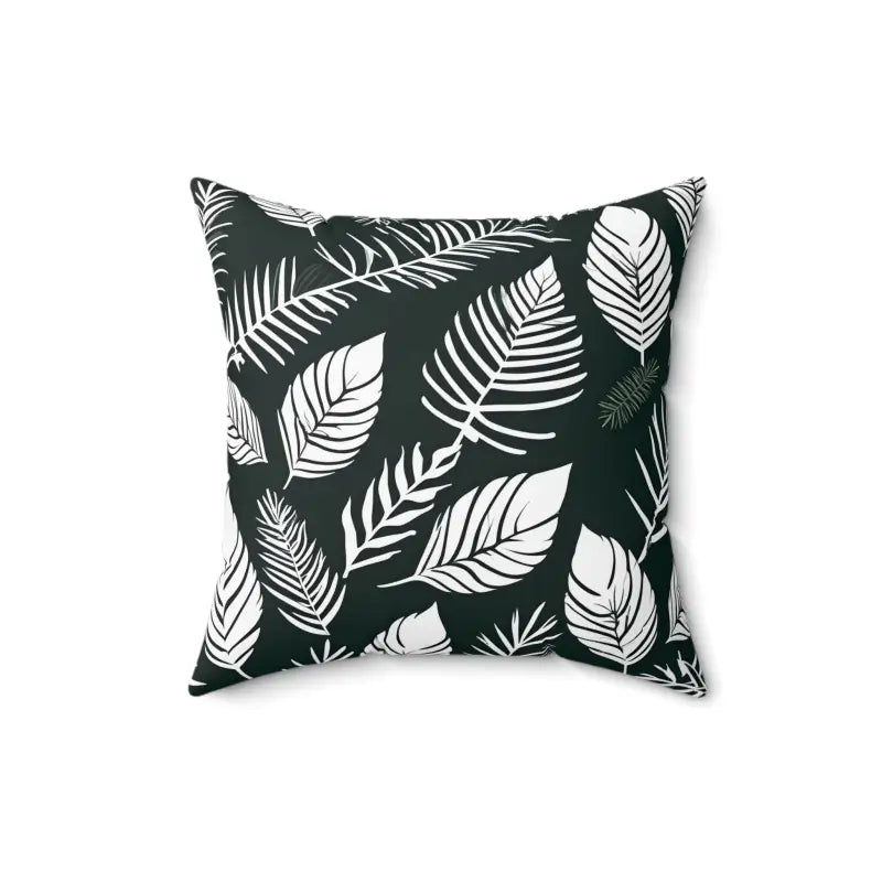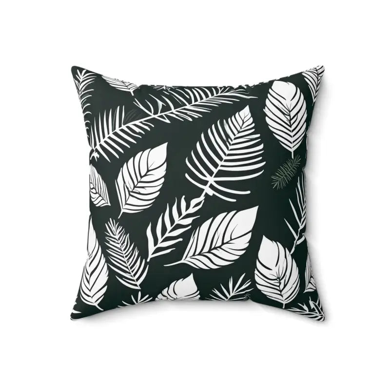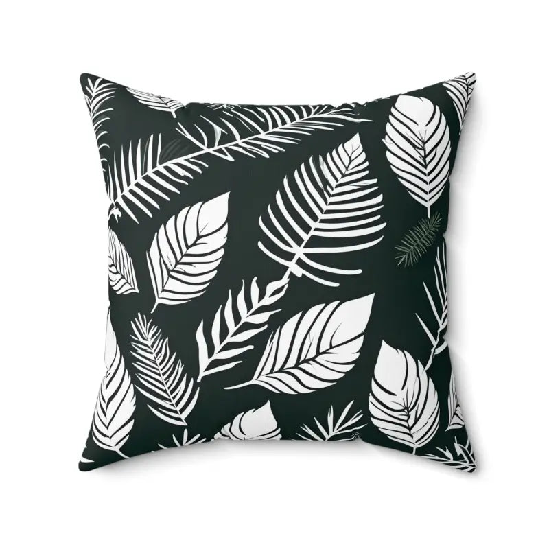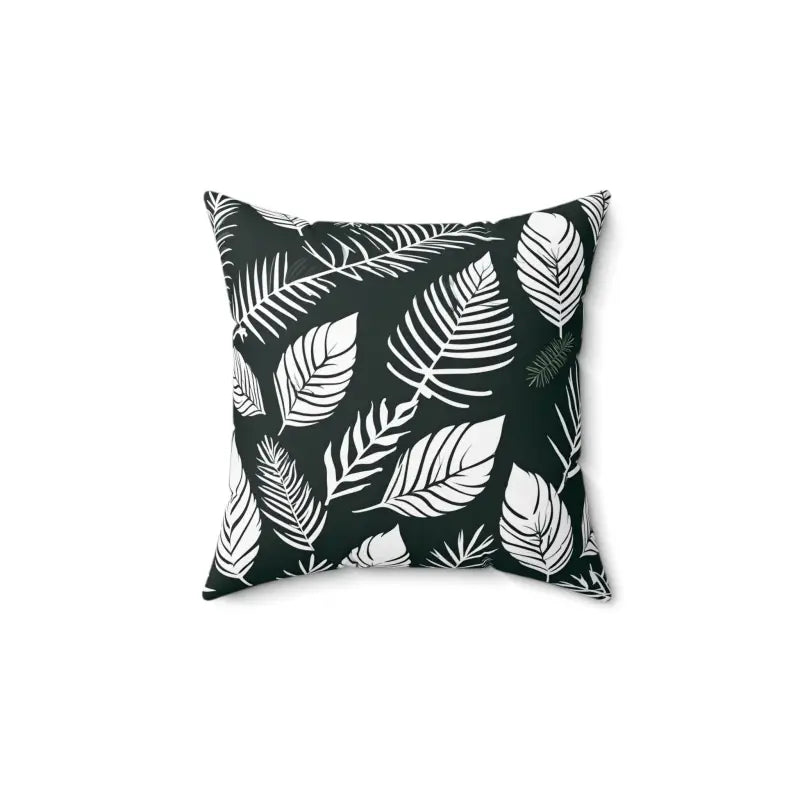 Leaves Spun Polyester Square Pillow. Transform your living space with these stunning indoor pillows, available in various sizes. Crafted for both style and comfort, they make a bold statement while creating a cozy atmosphere. Each pillow features a 100% Polyester cover and a matching 100% Polyester insert. With double-sided prints and a concealed zipper, these pillows are both chic and practical. Please note, this is a pre-constructed item, and the size may vary by +/- 0.5". Give your room the upgrade it deserves!