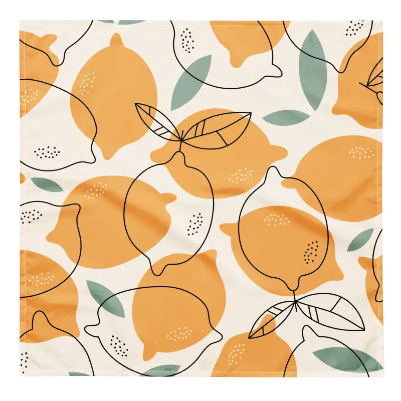 This eco friendly lemon print bandana is not only a trendy addition to your wardrobe but also a bold statement of your commitment to the environment. Make it yours today and experience sustainable style that sets you apart!