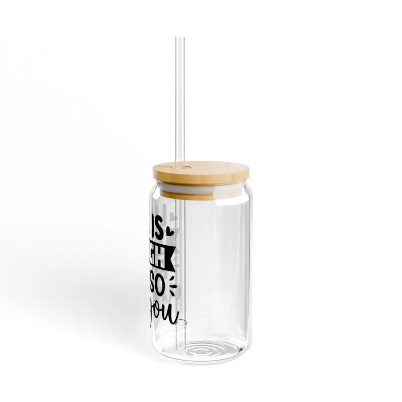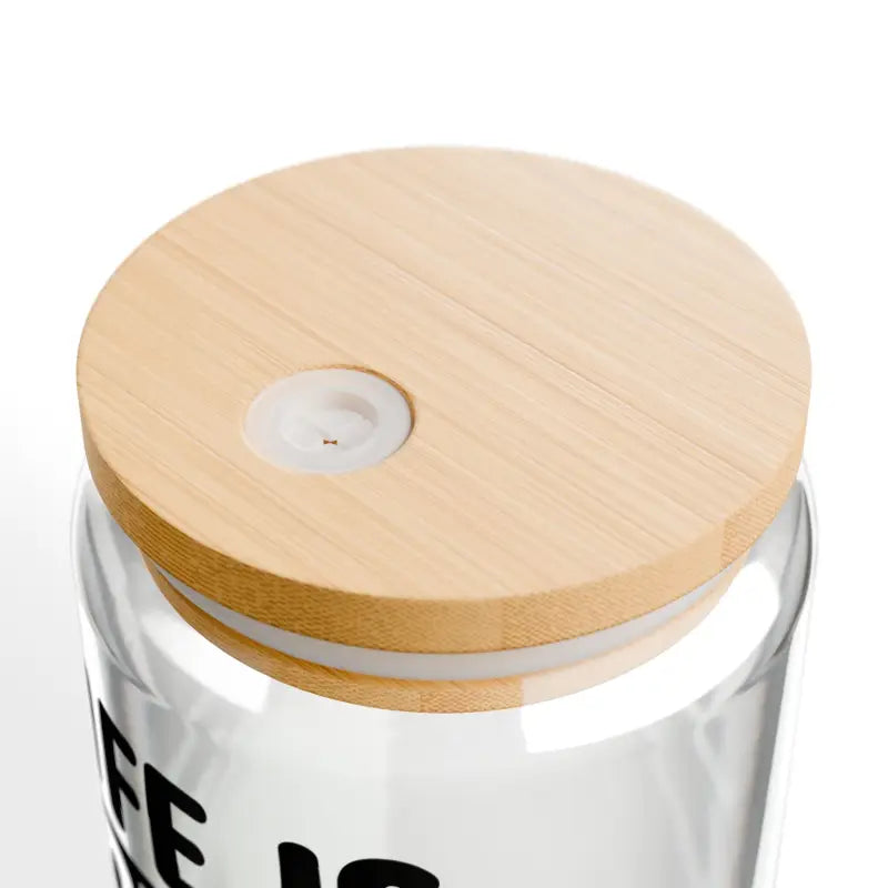 Life is tough and so are you, BPA free, Sipper Glass, 16oz. Quench your thirst in style with our 16oz Sipper Glass. Made from clear tempered glass, it's durable, sleek, and perfect for refreshing cocktails, juices, or any beverage you fancy. Choose between the classic version or opt for the version equipped with a Gasket-push Bamboo lid and Tritan straw for added convenience. This sipper glass is FDA Certified, BPA Free, and Cal. Prop 65 compliant, ensuring your safety and peace of mind with every sip.
