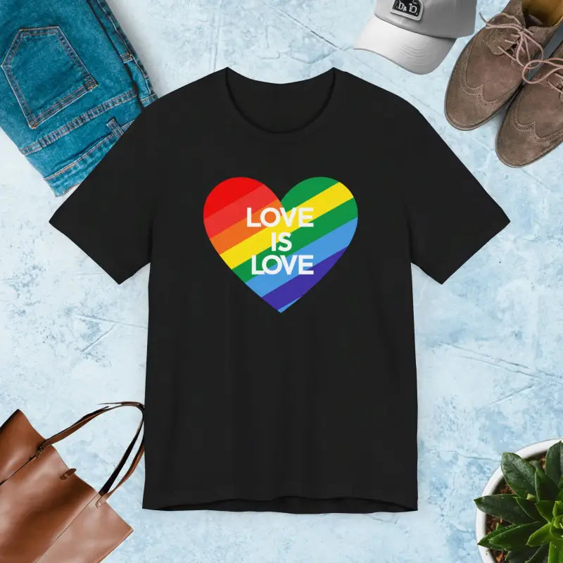 Get ready to turn heads and spread the message of love with our unisex jersey tee, the perfect embodiment of pride, style, and comfort rolled into one. Introducing the Love is Love tee, designed to celebrate inclusivity and unity, this gay pride tee is more than just apparel—it's a statement. Picture yourself wrapped in soft, breathable cotton that feels as good as it looks, whether you're out and about at a pride parade or chilling at home with friends.