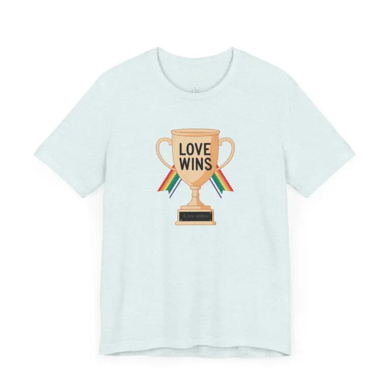 So why wait? Elevate your style with a garment that's as passionate about message and comfort as you are. Add the Love Wins Unisex Tee to your collection and step out with confidence and class, knowing you sport a look that embodies kindness, connection, and enduring fashion sense. Grab yours now, because love and comfort truly reign supreme!