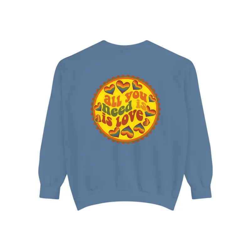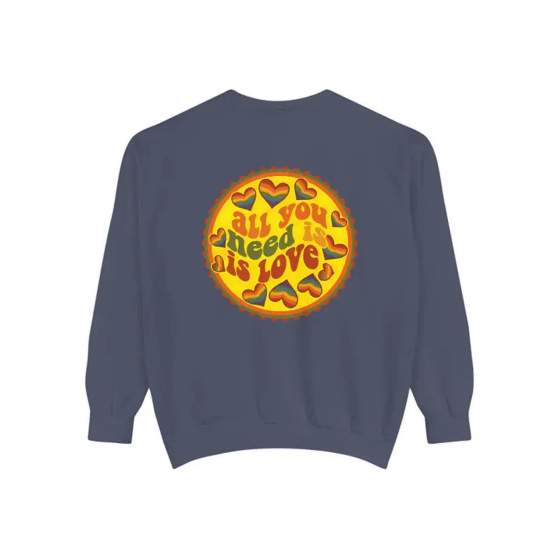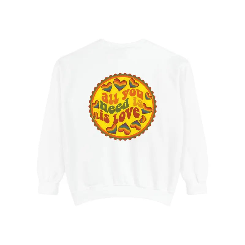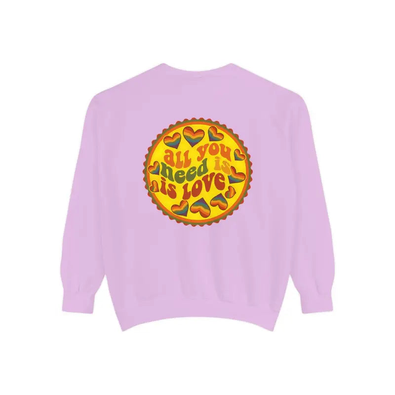 Get ready to fall head over heels for this lover heart sweatshirt that brings pure 70s magic straight to your wardrobe with its groovy LOVER heart graphic up front and an inspiring all you need is this love message blazing across the back.