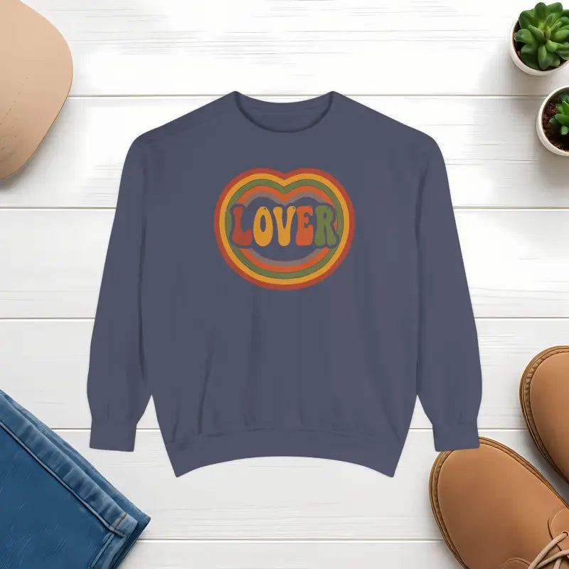 Lover Heart Sweatshirt - Retro 70s Graphic Design - DipaliZ
