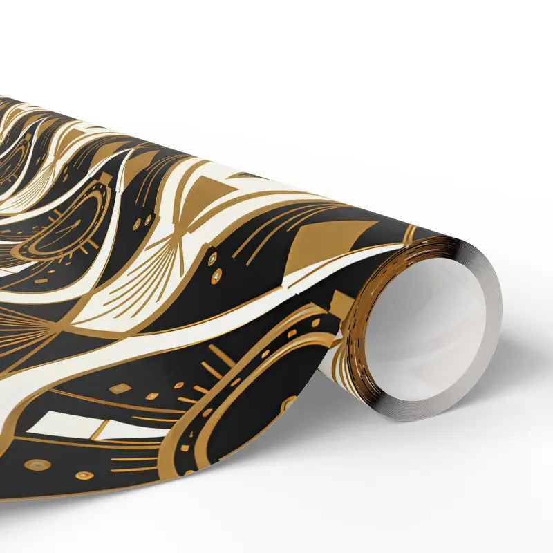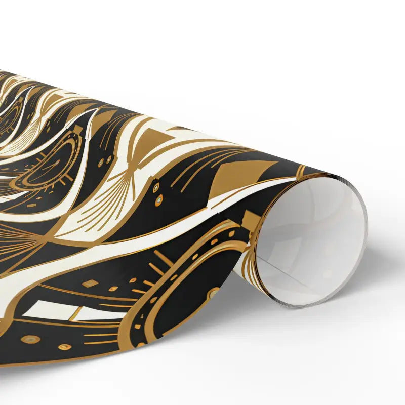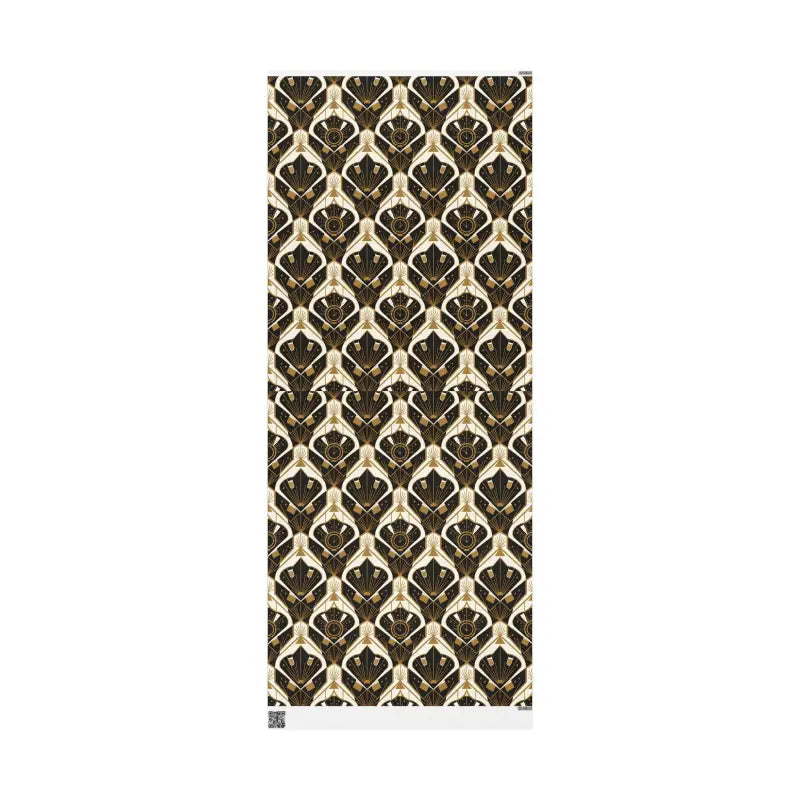 Black background with gold filigree scrollwork, inspired by Art Deco grandeur, creating a luxurious contrast that pops in any setting.