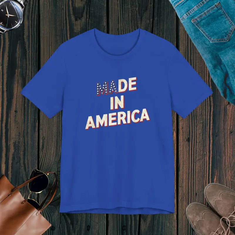 The breathable fabric also means you'll stay cool whether you're waving flags under the sun or dancing under the stars. And let's talk about quality—American-made means sewn with intricate care, ensuring that this patriotic tee stands the test of time, giving you season after season of effortless style and unmatched comfort.