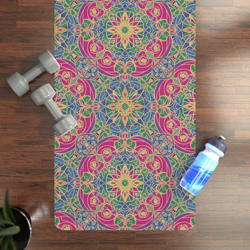 Transform your practice with this stunning mandala floral rubber yoga mat that brings vibrant energy to every pose. The mesmerizing pink and teal design creates a sacred space wherever you unroll it, inviting deeper meditation and mindful movement.