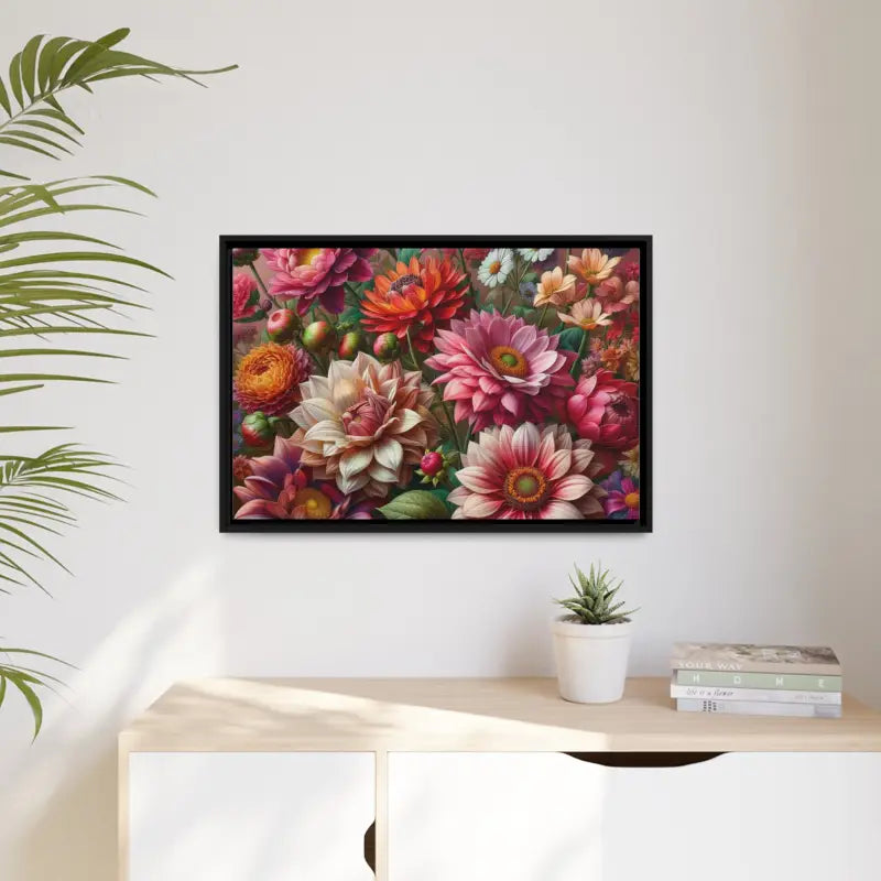 Craving a decor refresh that radiates modern style and sustainability? Level up your space with this vibrant dahlia flower matte canvas in a sleek black frame—built to impress and made to endure.