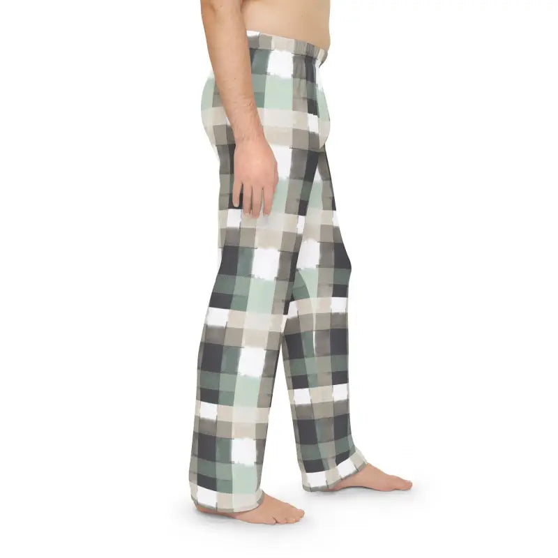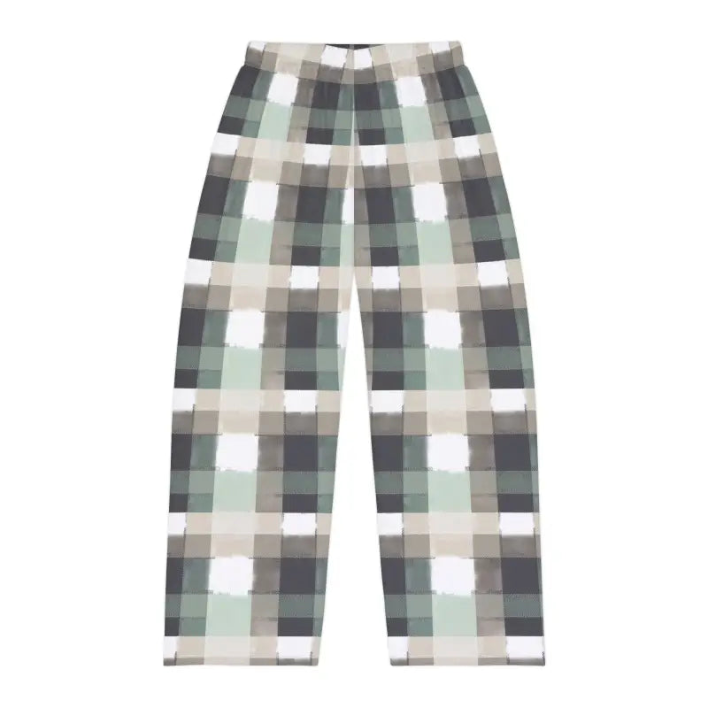 These gray lounge sleepwear bottoms feature a timeless washed plaid pattern blending soothing greens, warm grays, and gentle neutrals that look effortlessly put-together whether you're lounging solo or hanging with friends. The relaxed fit moves with you while keeping things stylish and low-key.
