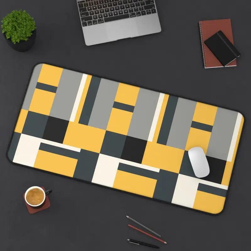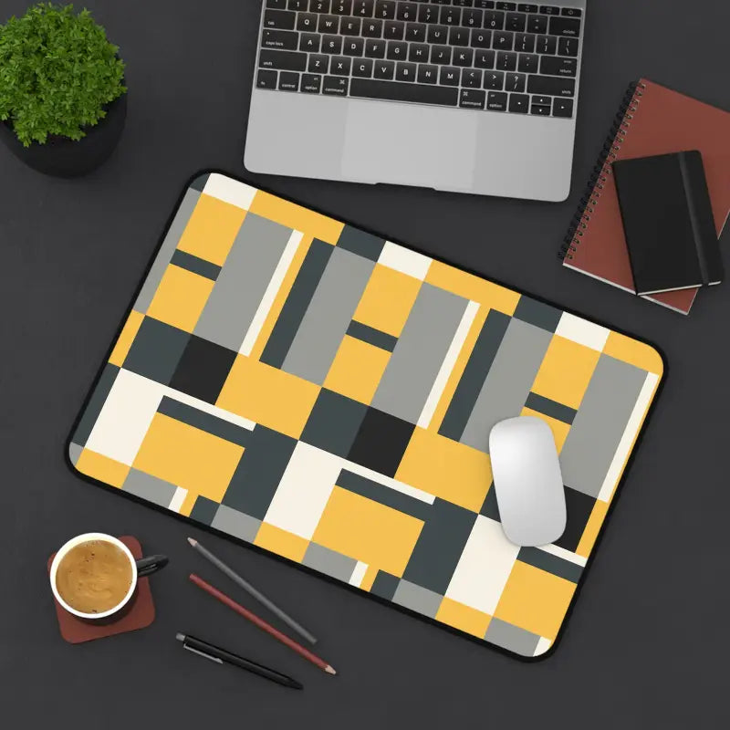 Transform your workspace into a mid-century masterpiece with this stunning geometric desk mat that brings bold mustard, charcoal gray, and black pattern energy to every project. Whether you're sketching your next big idea or powering through deadlines, this desk mat turns any surface into a stylish command center designed for creatives, professionals, and anyone who refuses to settle for boring.