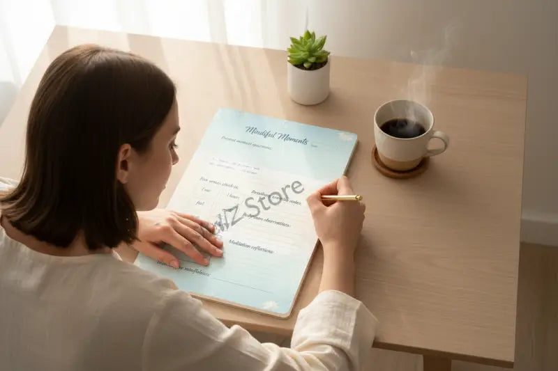 Imagine starting each day with intentional breathing exercises, tuning into your five senses, and capturing peaceful thoughts that anchor you in the present moment. This mindful moments journal brings structure to your meditation practice while giving you space to explore body sensations, set meaningful intentions, and reflect on what truly matters right now.