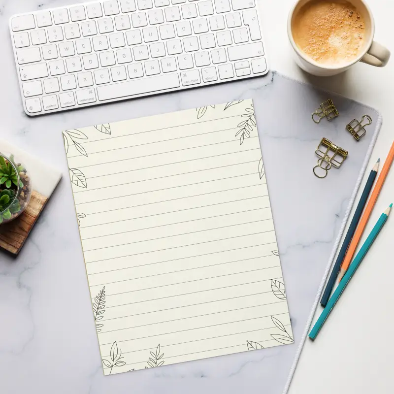 Picture this: you're sitting at your desk with morning light streaming through the window, reaching for a notepad that actually makes you want to write. The moment your hand touches the smooth surface of this minimalist leaf pattern ruled notepad, you feel that familiar creative spark ignite. Those delicate botanical illustrations aren't just decoration—they're your daily reminder that even the most mundane to-do list deserves a touch of natural beauty. Whether you're mapping out your biggest project yet or scribbling down a sudden burst of inspiration, every page becomes a canvas where productivity meets style. The generous 8.76 x 11.65 inch size gives you all the room you need to brainstorm freely, while the crisp ruled lines keep your thoughts organized and legible. This isn't just another boring office supply gathering dust in your drawer—it's the stationery essential that bridges the gap between function and aesthetic appeal. The sturdy cardboard or magnetic backing options mean this leaf pattern ruled notepad stays put wherever you need it most, from your kitchen counter to your workspace. Use it to capture meeting notes that you'll actually want to reference later, plan weekly meals with a side of botanical charm, draft creative projects that demand both structure and inspiration, keep track of daily goals in a format that motivates you to actually check them off, or leave thoughtful messages for family members on the fridge that feel personal and intentional.