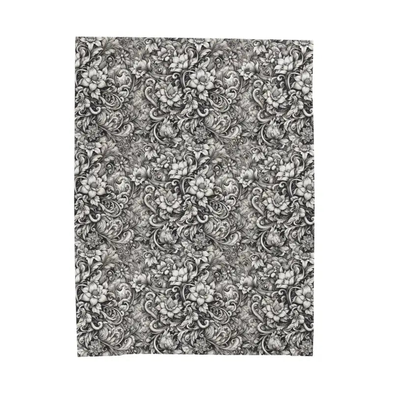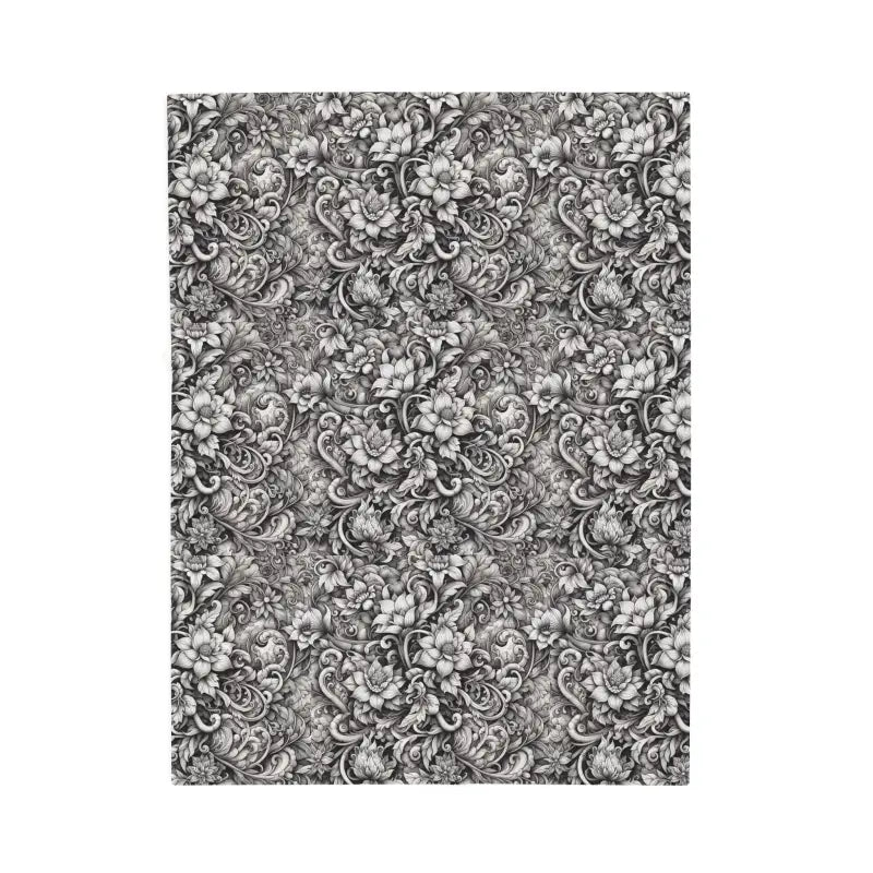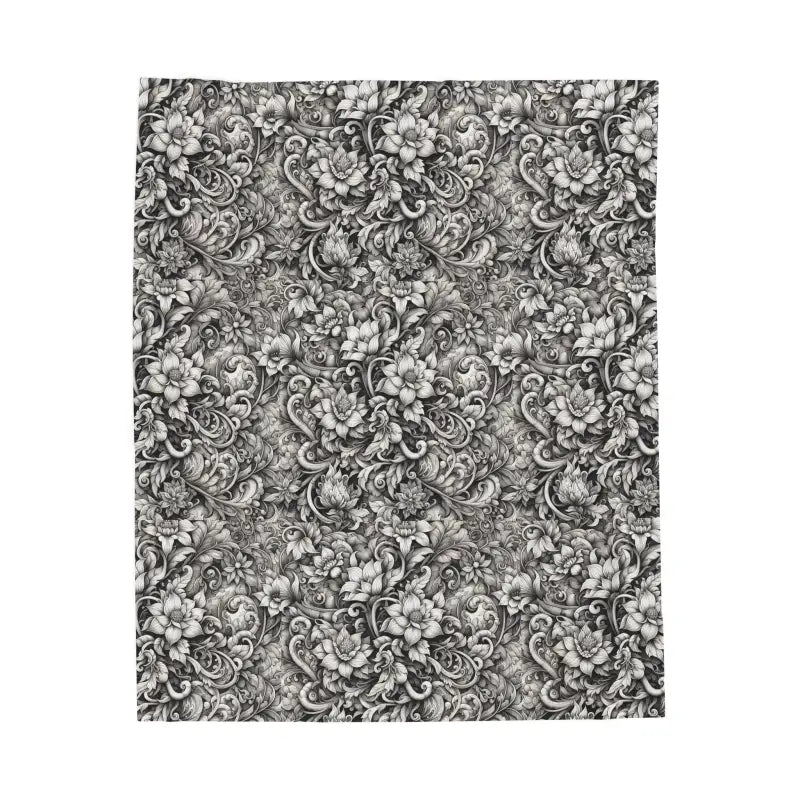Monochrome floral pattern Velveteen Plush Blanket. Create a cozy and warm atmosphere at home with this plush velveteen blanket. It is soft to touch and perfect for any home. Available in three sizes: 30x40", 50x60", 60x80".