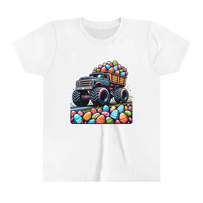 This tee features a thrilling monster truck design, complete with vibrant details that bring a playful twist to classic Easter themes. The colorful illustration captures the imagination, evoking a sense of speed and adventure, making it an instant favorite among young trendsetters.