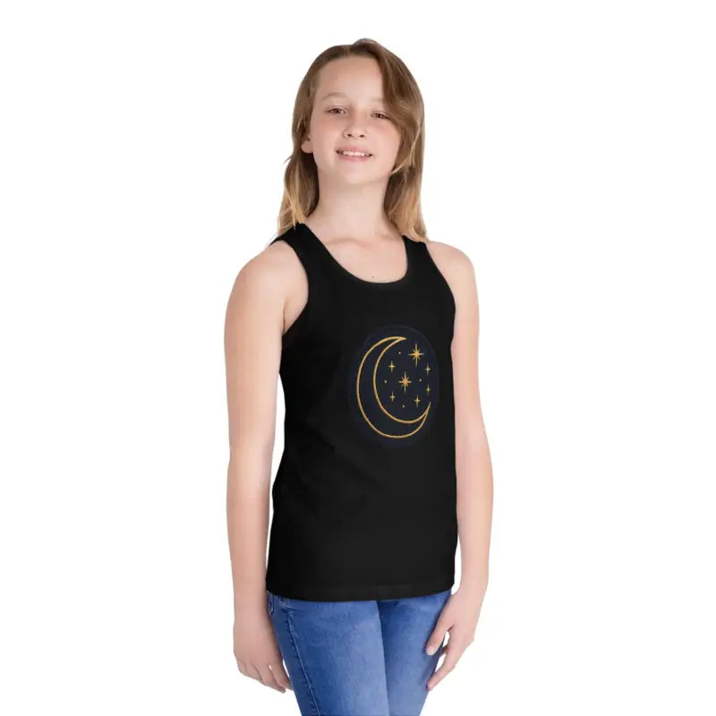 Get ready to light up every adventure. With our kid’s jersey tank, your little star is all set for comfort, style, and endless fun in the great outdoors. Grab this moon phase shirt now and let the cosmic journey begin!