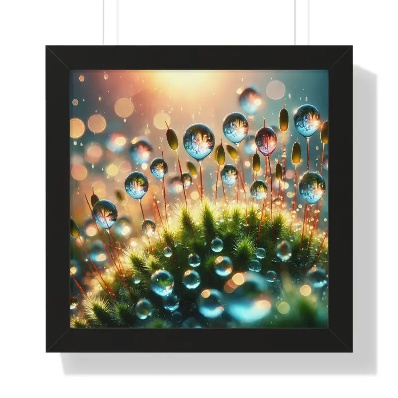 Bring your room to life with the Elegant Framed Vertical Poster showcasing Moss Capsules adorned with Water Drops. This exquisite artwork isn't just decor—it's a gateway into the fascinating world of nature's tiniest marvels. Immerse yourself in the delicate universe where water droplets sit gracefully on moss capsules, all captured in brilliant detail on premium archive-worthy photo paper. Whether you're a fan of nature or simply appreciate finely crafted art, this vertical poster is sure to captivate.