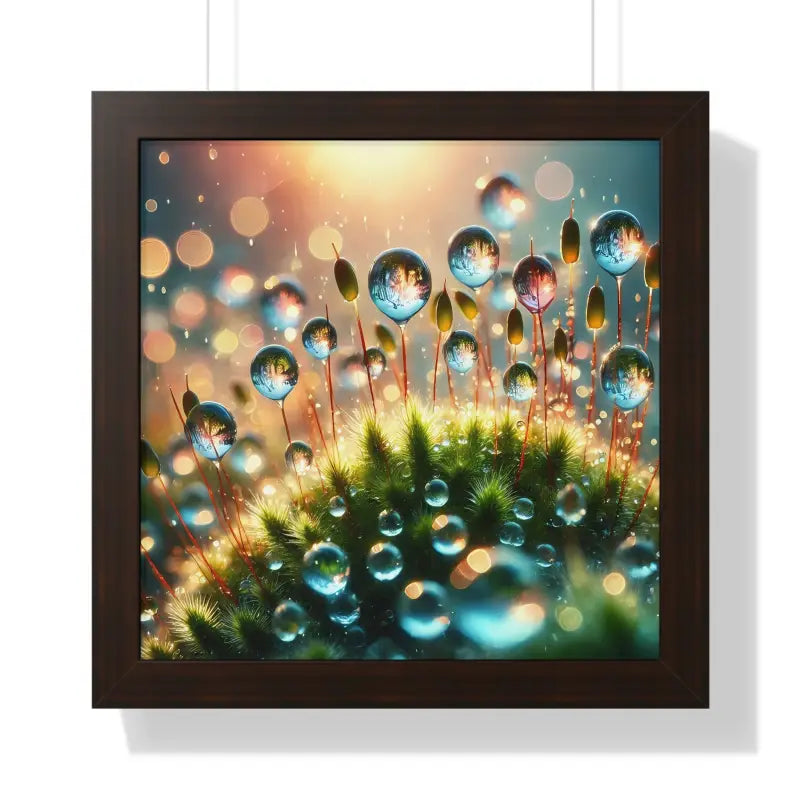 Capture the essence of the natural world with this Elegant Framed Vertical Poster. Let it transform your space into an inspirational and serene haven. Don't wait to experience this fusion of elegance and practicality. Make it yours today and see your walls come alive with the subtle elegance of Moss Capsules with Water Drops.