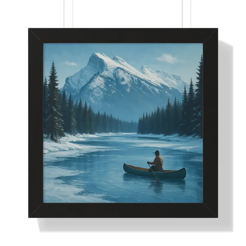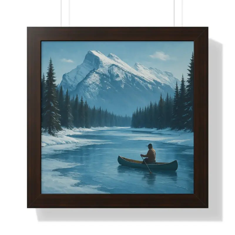Mountains and river flowing by, Framed Horizontal Poster. Elevate your space with this stunning framed horizontal poster, perfect for high quality decor or a laid-back lifestyle. Ideal for birthdays, housewarmings, or as a special Mother's Day gift. Relevant for home decor enthusiasts and ocean lovers. Perfect for creating a serene and relaxing atmosphere in any room.