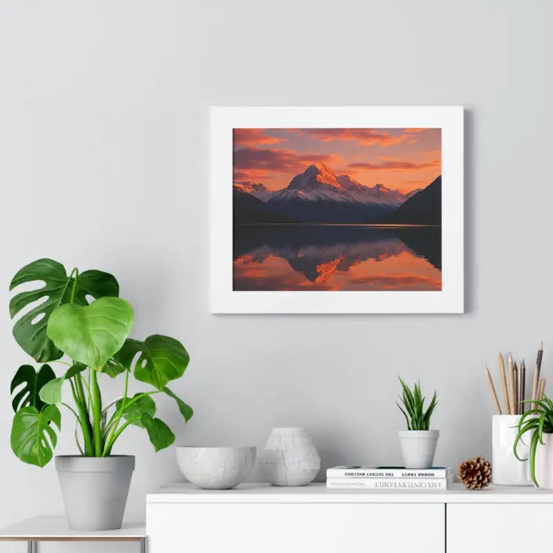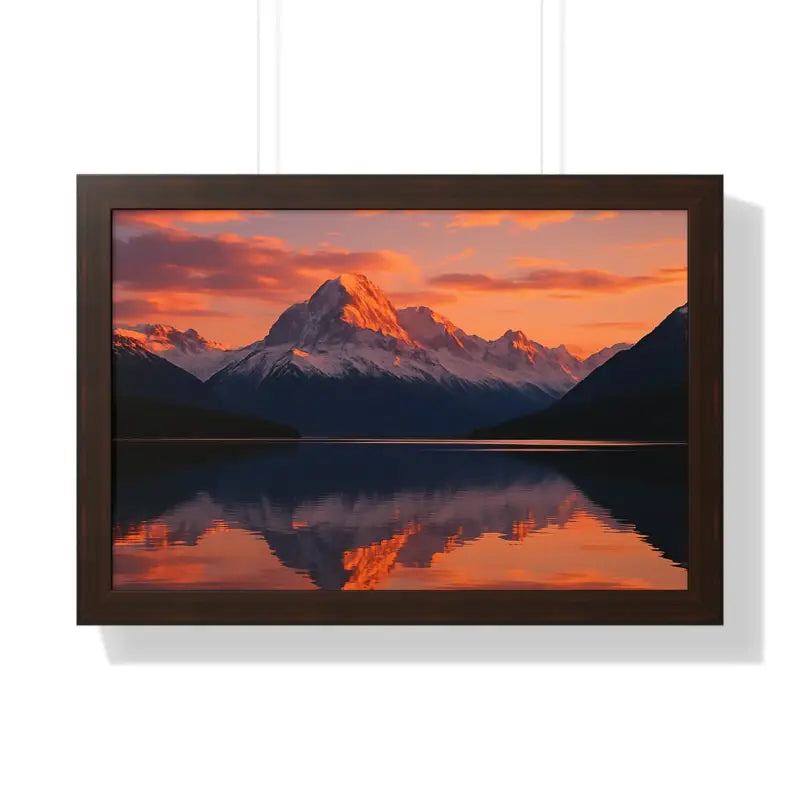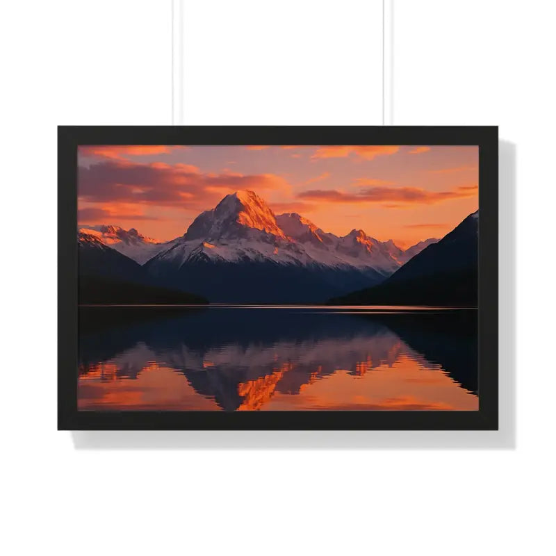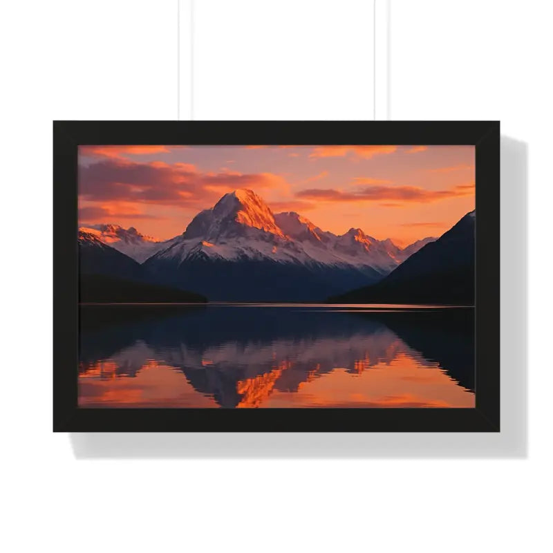 Mountains at sunset at a lake, Framed Horizontal Poster
