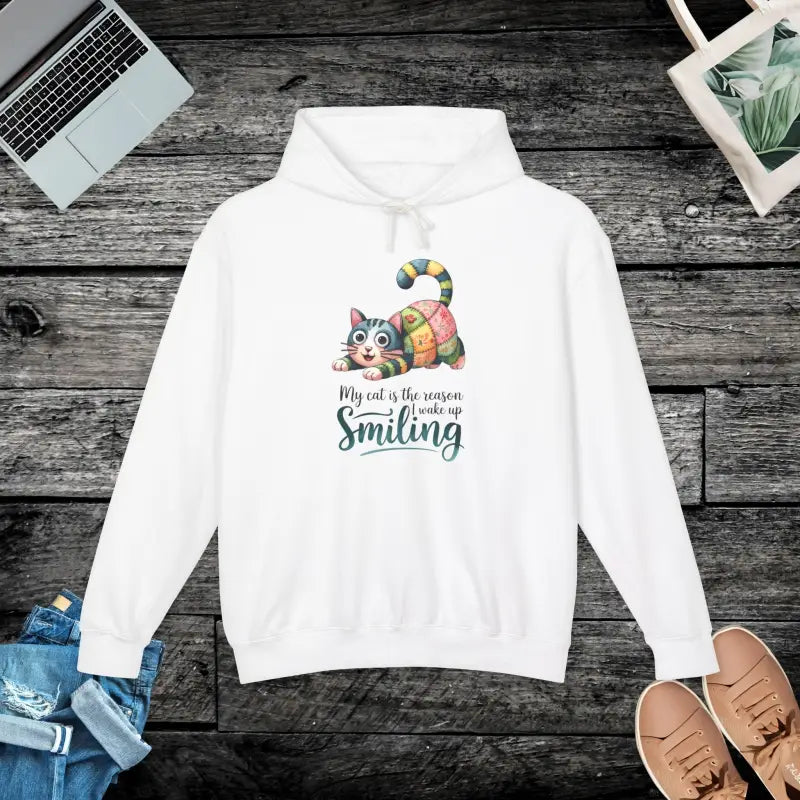 Step into gentle warmth and wrap yourself in playful purrs with this smiling cotton hoodie that combines soft cloudlike comfort with oeko-tex certified low-impact dyes for effortless style in your modern lifestyle essentials