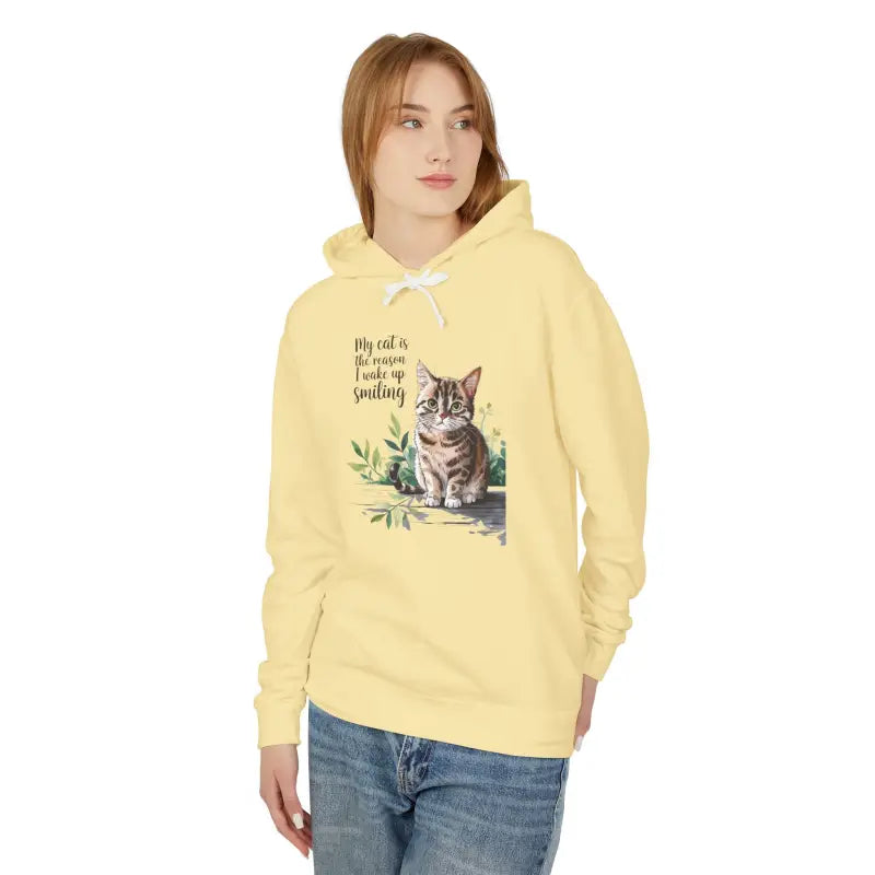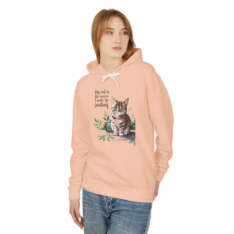 Wake up swaddled in cozy delight with this cat lover lightweight hoodie that wraps you in soft morning embrace for sipping coffee with your purring pal, all while showing off your smiling cat lover spirit in every breath.