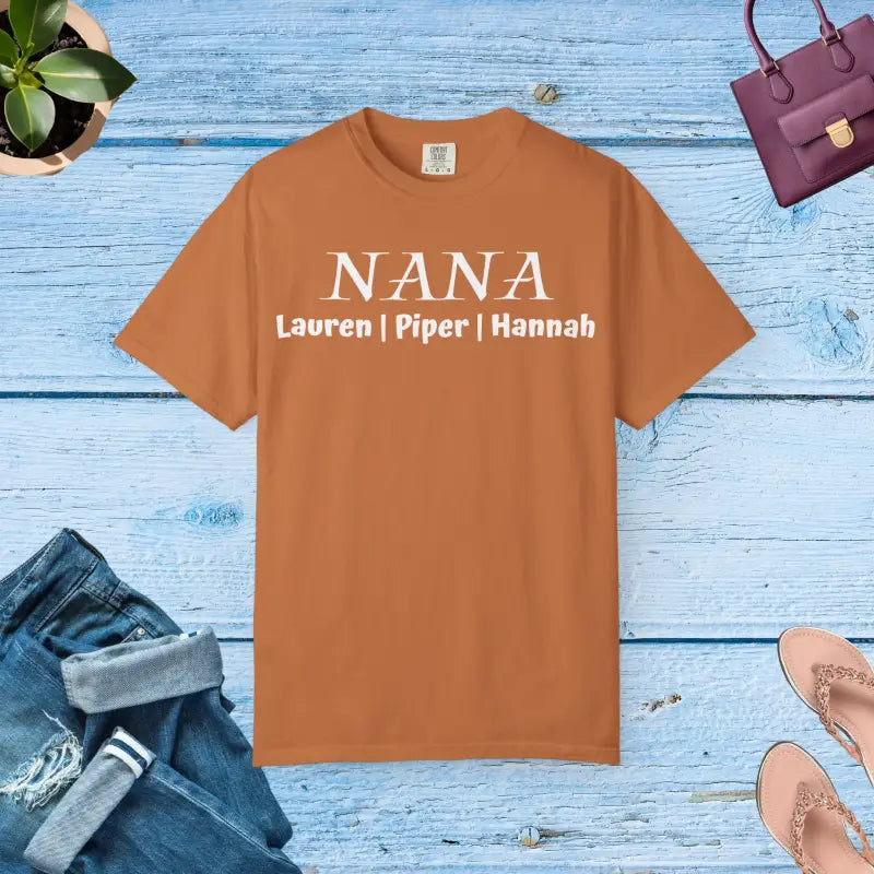 Celebrate the special bond between Nana and her grandkids with this heartwarming custom names grandma shirt that turns cherished names into wearable love! This nana personalized tee features beautiful handwritten-style names dancing across the chest, creating an instant smile every time she puts it on.