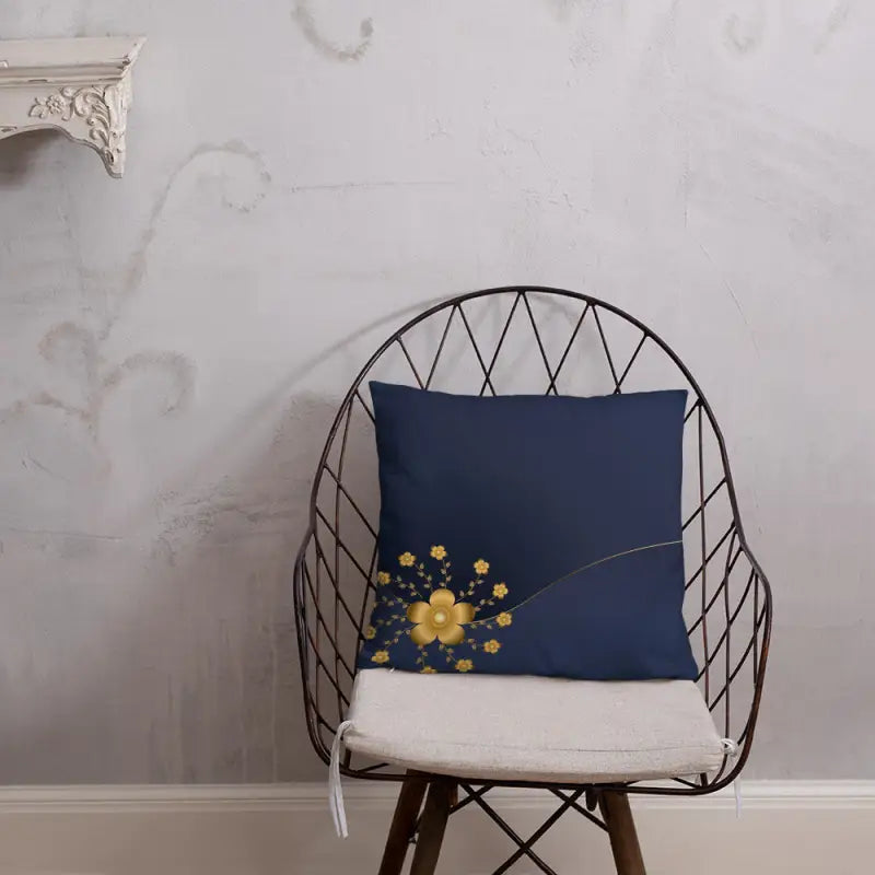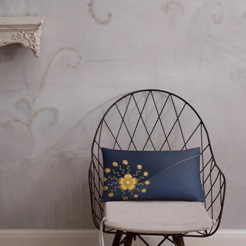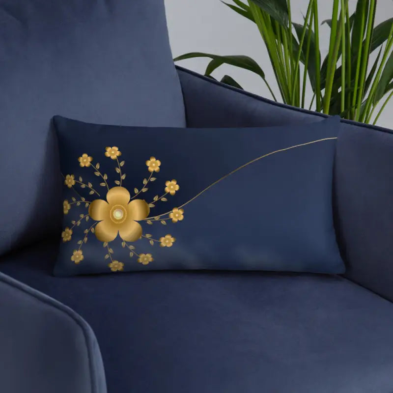 Make bland spaces unforgettable with a gold floral throw pillow that shines. Whether tossed onto a couch, layered on a bed, or featured as a chic navy blue throw pillow, its opulent flair and shimmering gold floral design demand attention and bring any decor to the next level.